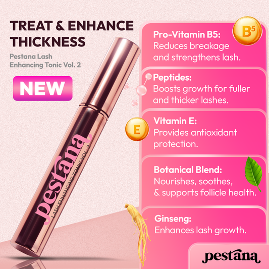Pestana Lash Enhancing Tonic Vol. 2 is here—now with even more growth stimulants, added peptides, vitamins, and a blend of botanical extracts. This is the ultimate formula for nourishing your lashes.