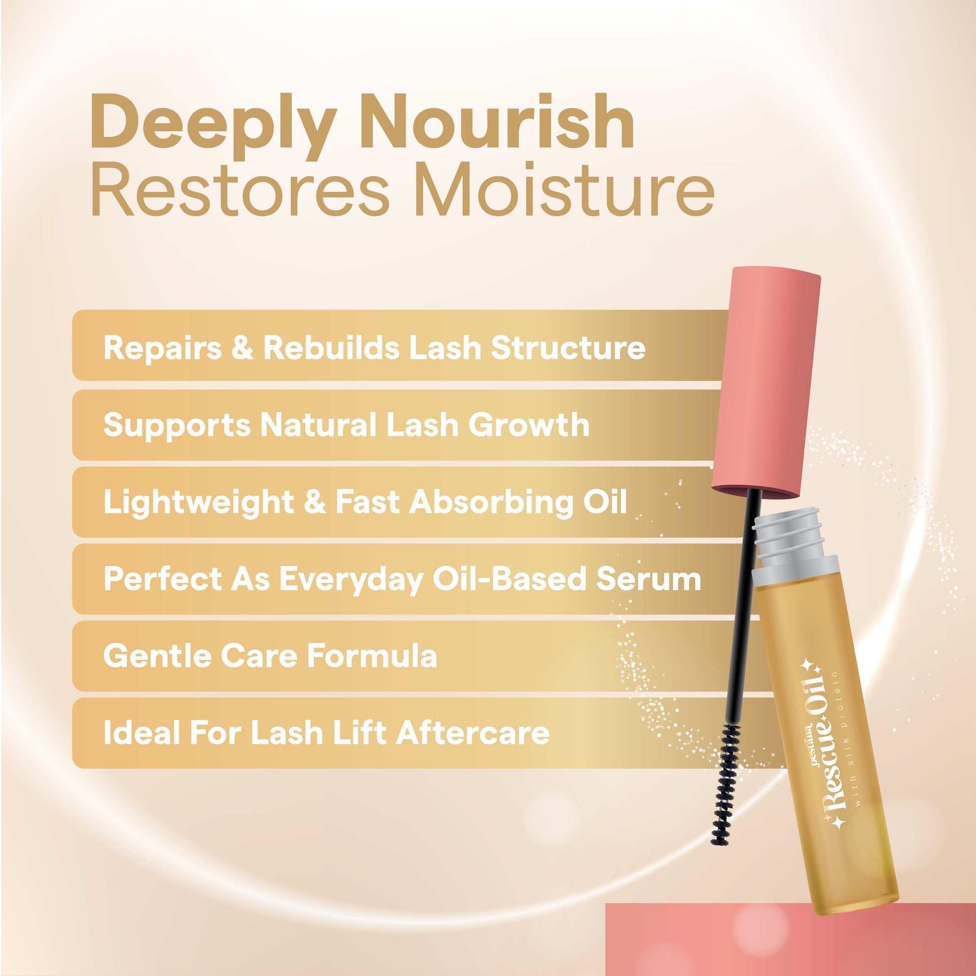 Pestana Rescue Oil; blends pure oils with plant-based silk protein, specifically formulated for lash lift or brow lamination aftercare. This formula repairs, nourishes, and protects lashes, preventing damage and breakage while promoting strength and overall lash health. Pestana Lash Rescue Oil also promotes lash growth over time due its high content of ricinoleic acid (Castor Oil).