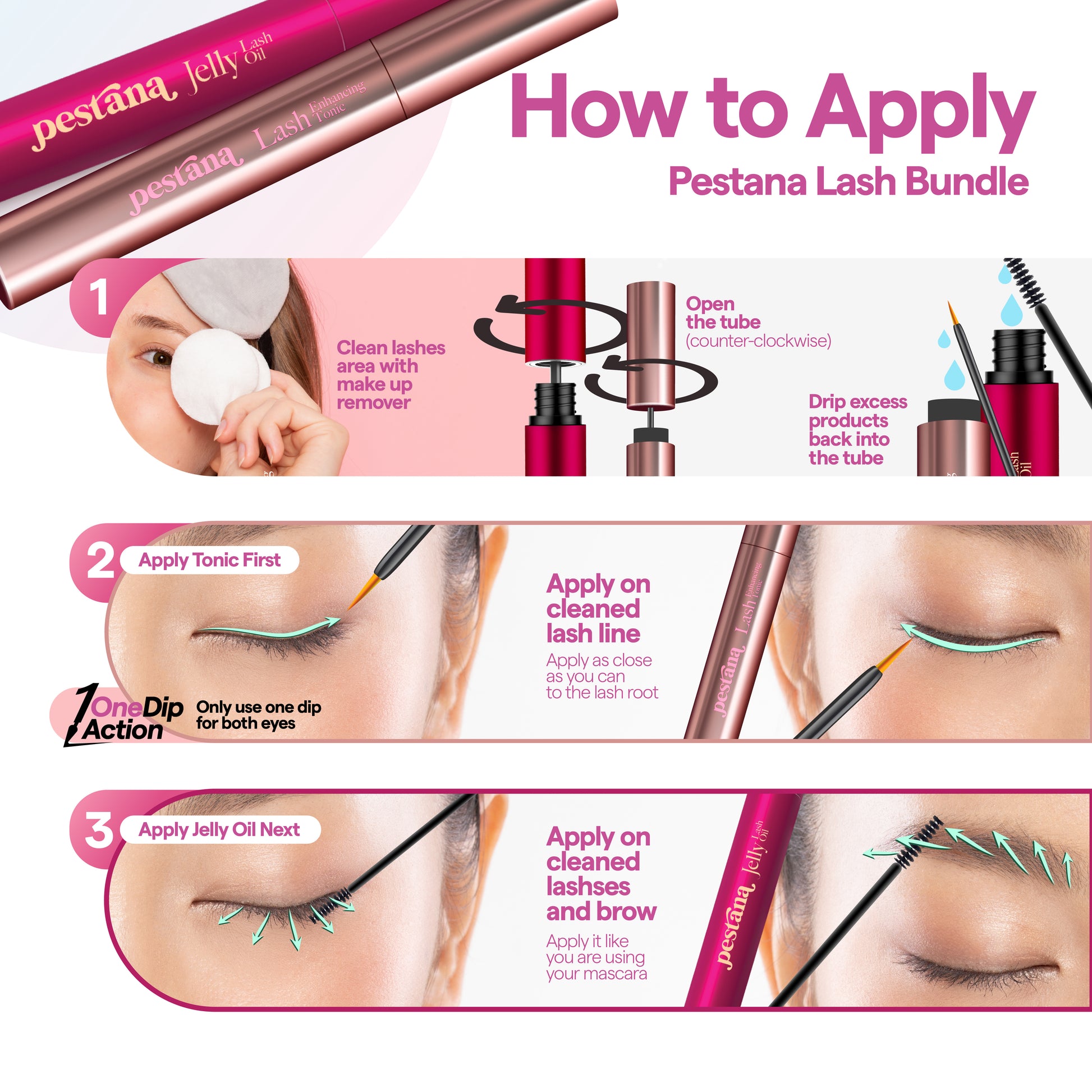 **THE MAIN DIFFERENCE BETWEEN PESTANA JELLY OIL AND PESTANA LASH ENHANCING TONIC IS THAT PESTANA JELLY OIL IS A SERUM FOCUSING ON EACH LASH STRAND, WHILE PESTANA LASH ENHANCING TONIC IS A HIGHLY CONCENTRATED TREATMENT TARGETING THE LASH ROOTS AND FOLLICLES. THESE TWO PRODUCTS CAN BE COMBINED FOR BETTER RESULTS.